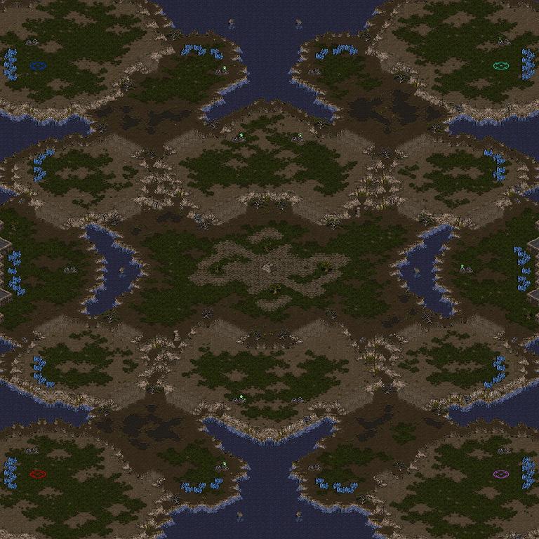 Back to the number of expos, I have played the map quite a bit. There used to be two expansions in the middle, and I've taken them out, they were originally just an annoying obstacle with geysers and minerals in the way blocking paths etc. In the matches I've played 2v2 FFA or 1v1, there have always been enough expos for a very long game.