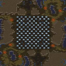 | Maybe have an empty 'oasis' in the middle? Like take out a few Dwebs there, tho that might make a terran encampment there unstoppable. |