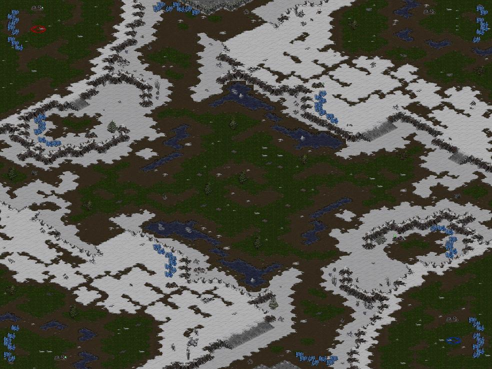 | Widen the nats a little and give the map some curves it looks very squareish. Tightness of the map may favor terran. You can try elliminating the water and bridges in the center to create plenty of room to flank for zerg and toss. |